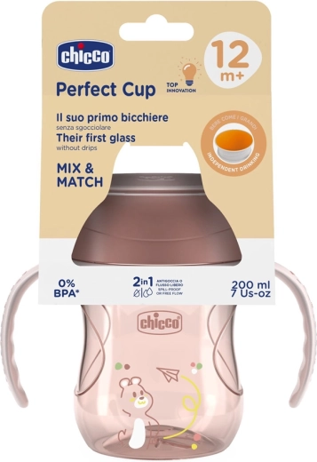 Naucz swoje dziecko samodzielnego picia z kubkiem CHICCO Perfect Cup 360°. Dzięki obrzeżu 360° z silikonową membraną pije się jak ze szklanki, ale bez rozlewania. Odłączane uchwyty pasują do małych rączek, a przezroczysta membrana pomaga dziecku wyczuwać przepływ płynu. Po jej wyjęciu kubek staje się otwartą szklanką. BPA free, pojemność 200 ml, idealny od 12 miesięcy.