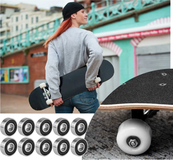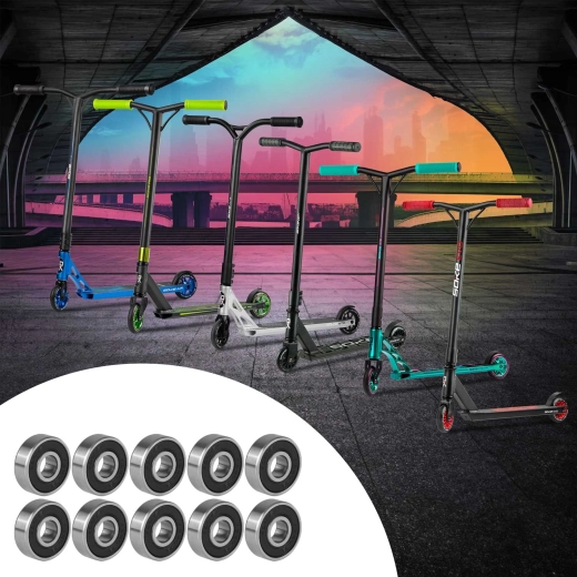 Wysokiej precyzji łożyska ABEC 9 zapewniają minimalne tarcie, płynną i szybką pracę oraz długą żywotność do hulajnóg, deskorolek i rolek inline. Wymiary 22 × 8 × 7 mm pasują do standardowych kółek, a ich uszczelniona konstrukcja pomaga chronić przed kurzem i zanieczyszczeniami, gwarantując stałą wydajność.