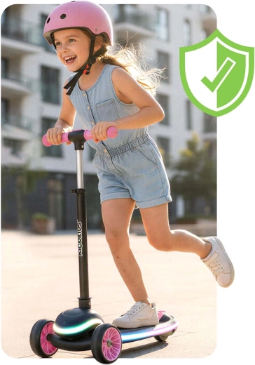 Hulajnoga składa się jednym ruchem i po złożeniu zajmuje minimum miejsca – idealna do auta, szafy lub na schody. 3 poziomy wysokości kierownicy (ok. 65–81 cm) zapewniają perfekcyjne dopasowanie do wzrostu dziecka, a skuteczny tylny hamulec nożny pomaga szybko kontrolować prędkość.