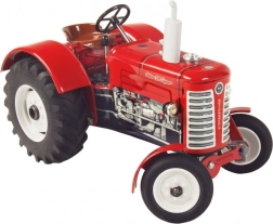 Ten szczegółowy metalowy traktor w kultowym czerwonym kolorze zapewnia autentyczne wrażenia z jazdy dzięki mechanicznemu napędowi na kluczyk. Realistyczne wykonanie, gumowe koła i sterowana przednia oś czynią z niego świetny prezent dla małych kierowców i zapalonych kolekcjonerów marki ZETOR.