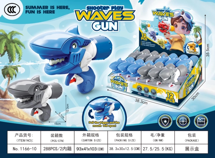 Ciesz się orzeźwiającymi wodnymi potyczkami z uroczym pistoletem w kształcie rekina. Dzięki kompaktowej długości 15 cm wygodnie mieści się w dziecięcej dłoni, jest lekki i łatwy w obsłudze. Wystarczy napełnić wodą i zabawa może się zacząć – idealny do zabaw na świeżym powietrzu w ogrodzie, na placu zabaw i nad wodą.