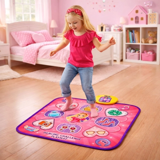 Wybierz spośród 5 trybów: swobodny taniec, tryb 4 i 6 klawiszy, tryb pamięci oraz elektroniczne perkusje. Trzy poziomy trudności zapewnią zabawę dla dzieci, nastolatków i dorosłych. Wyświetlacz wyniku dodaje rywalizacji, a regulowana głośność gwarantuje wygodne użytkowanie.