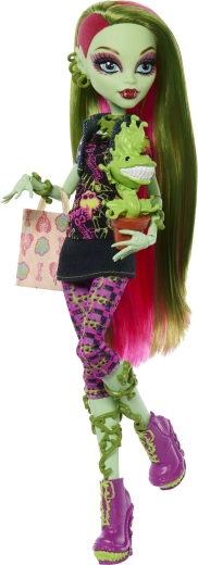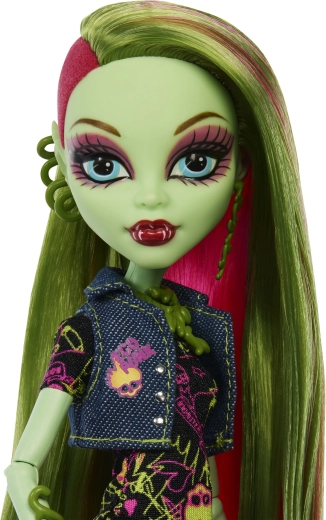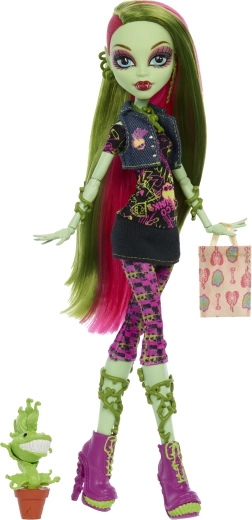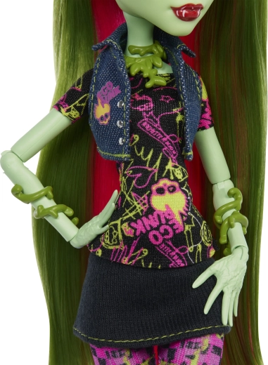 Venus McFlytrap olśniewa wyrazistymi botanicznymi wzorami, różowo‑zielonymi włosami i dopracowaną biżuterią. Elastyczna konstrukcja z 11 punktami artykulacji umożliwia realistyczne pozy i kreatywne opowiadanie historii ze świata MONSTER HIGH. W zestawie znajdziesz też wiernego pupilka Chewliana, który dodaje kompletowi wartości kolekcjonerskiej.