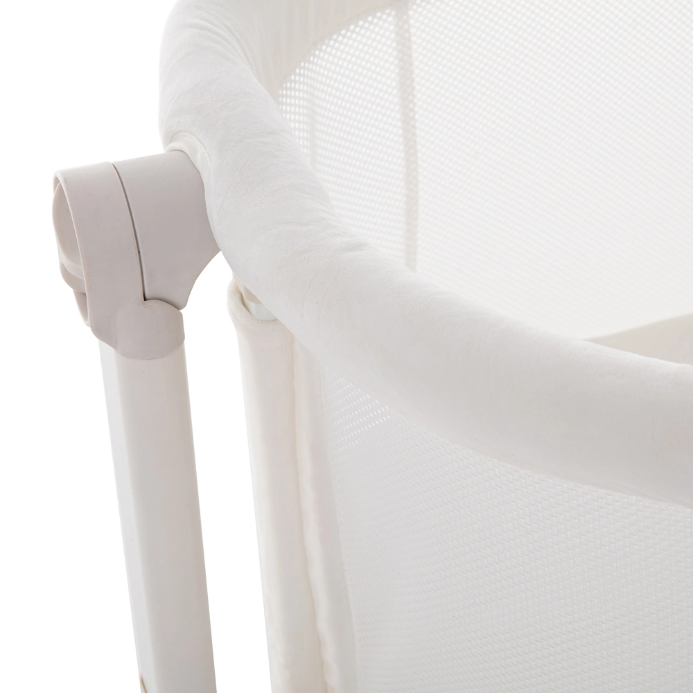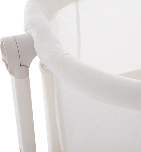 Odłączana ścianka boczna i 5 poziomów wysokości pozwalają wyrównać łóżeczko z materacem rodziców i mieć maluszka w zasięgu ręki – wygodne nocne karmienie i opieka.