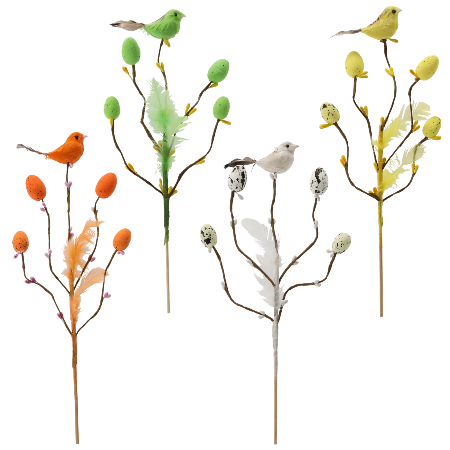 Wybierz mix czterech kolorów (zielony, biały, pomarańczowy, żółty) i wprowadź harmonię do swoich wielkanocnych ozdób. Dekoracja jest lekka, wielokrotnego użytku i idealna do szybkiego, efektownego wykończenia sezonowych wystrojów.