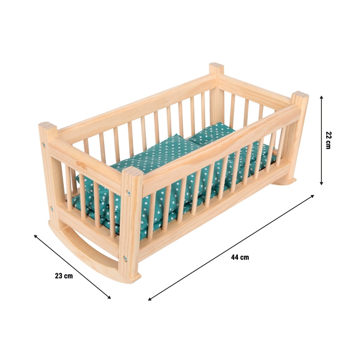 Kołyska wyróżnia się bezpiecznym wykonaniem z zaokrąglonymi krawędziami i wysoką jakością, gwarantującą długą żywotność. Dzieci, bawiąc się w odgrywanie ról, łatwo przyswajają codzienne rytuały i opiekę, a jednocześnie ćwiczą motorykę małą i poczucie rytmu.