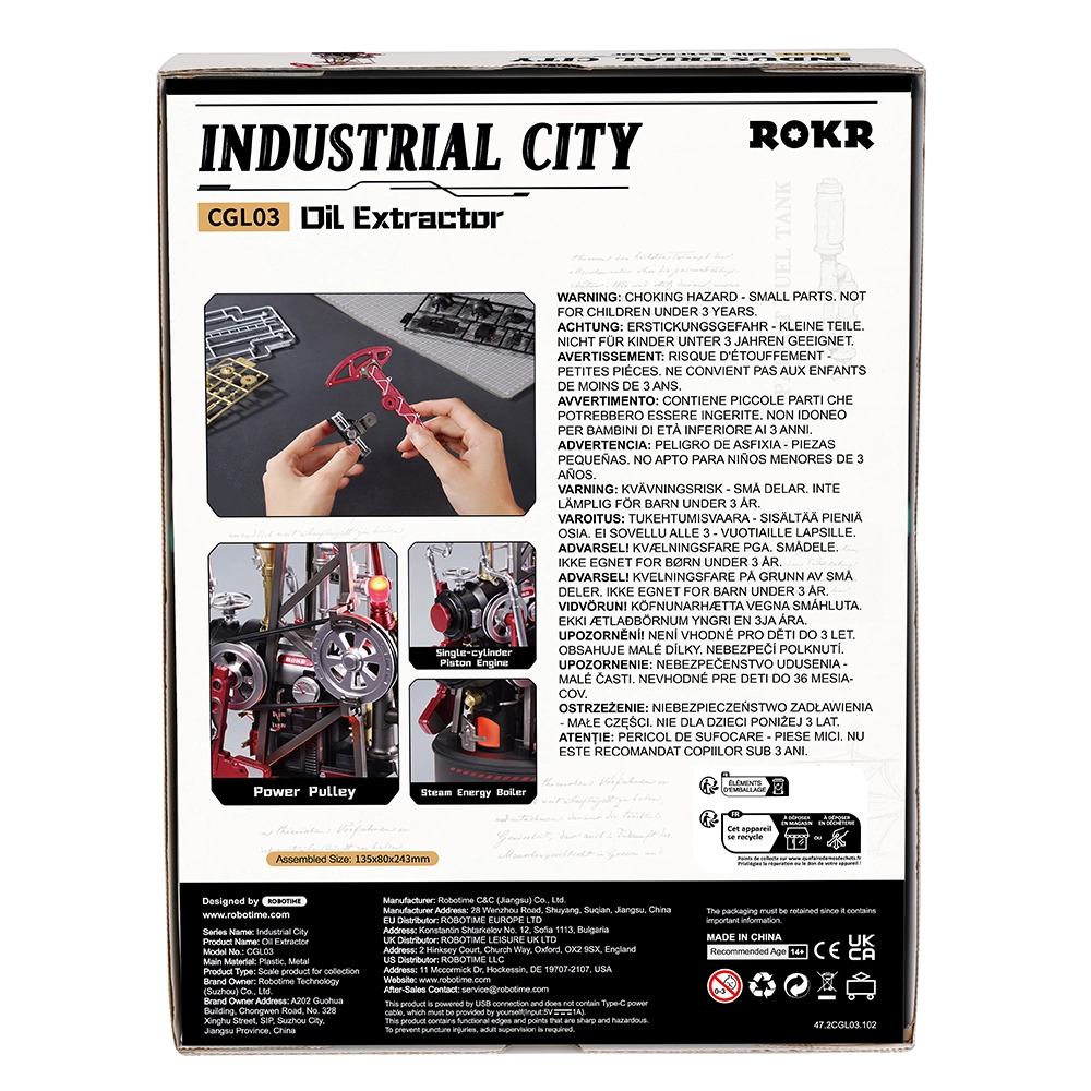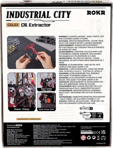 Model jest częścią serii Industrial City i po złożeniu staje się przyciągającą wzrok ruchomą dekoracją oraz pomocą dydaktyczną z mechaniki. Dzięki średniemu poziomowi trudności zainteresuje zarówno początkujących, jak i zaawansowanych konstruktorów. Zasilanie przez USB gwarantuje stabilną pracę bez troski o baterie.