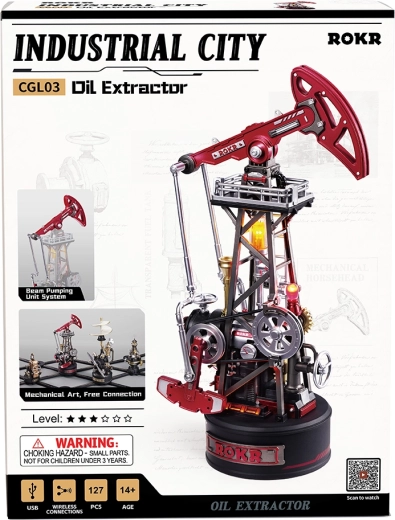 Wejdź w świat ery przemysłowej z dopracowaną 3D układanką pompy naftowej, która oferuje realistyczny kołyszący ruch ramienia, działające przekładnie z mechanizmem tłokowym oraz efektowne oświetlenie LED. Model w stylu industrialnym jest zasilany przez USB, zawiera 127 elementów i ma średni poziom trudności, dzięki czemu doskonale sprawdzi się jako dekoracja, prezent i kolekcjonerski eksponat dla dzieci od 14 lat oraz dorosłych.