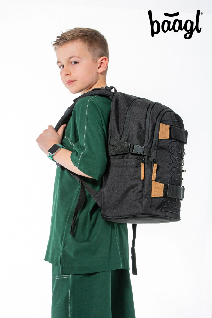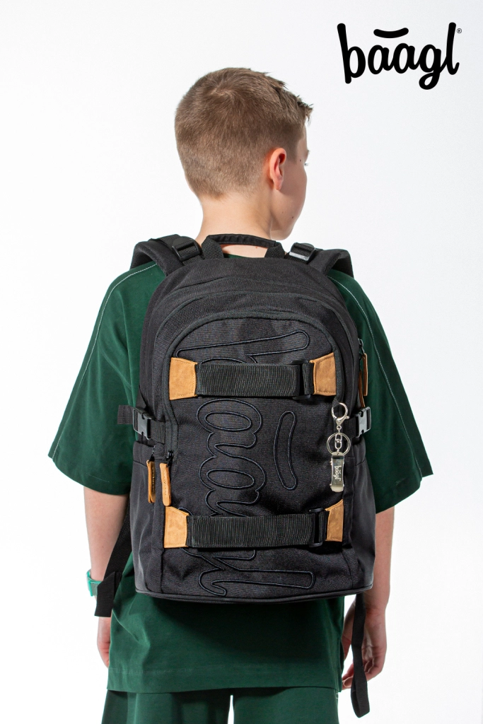 Plecak szkolny SKATE DARKNESS oferuje trzy komory z organizerem oraz wyściełaną kieszeń na laptop 15" lub tablet. Ma ergonomicznie ukształtowane plecy, w pełni regulowane szelki, pas piersiowy i boczne pasy kompresyjne oraz dwa przednie paski do mocowania deskorolki. Plecak waży jedynie 850 g, ma pojemność 25 l i udźwig 7 kg. Wykonany z wytrzymałego, wodoodpornego materiału z recyklingu, wyposażony w zamki YKK, uzupełniony o elementy odblaskowe oraz metalową zawieszkę w kształcie deski. Linia SKATE jest testowana i certyfikowana w akredytowanym laboratorium.