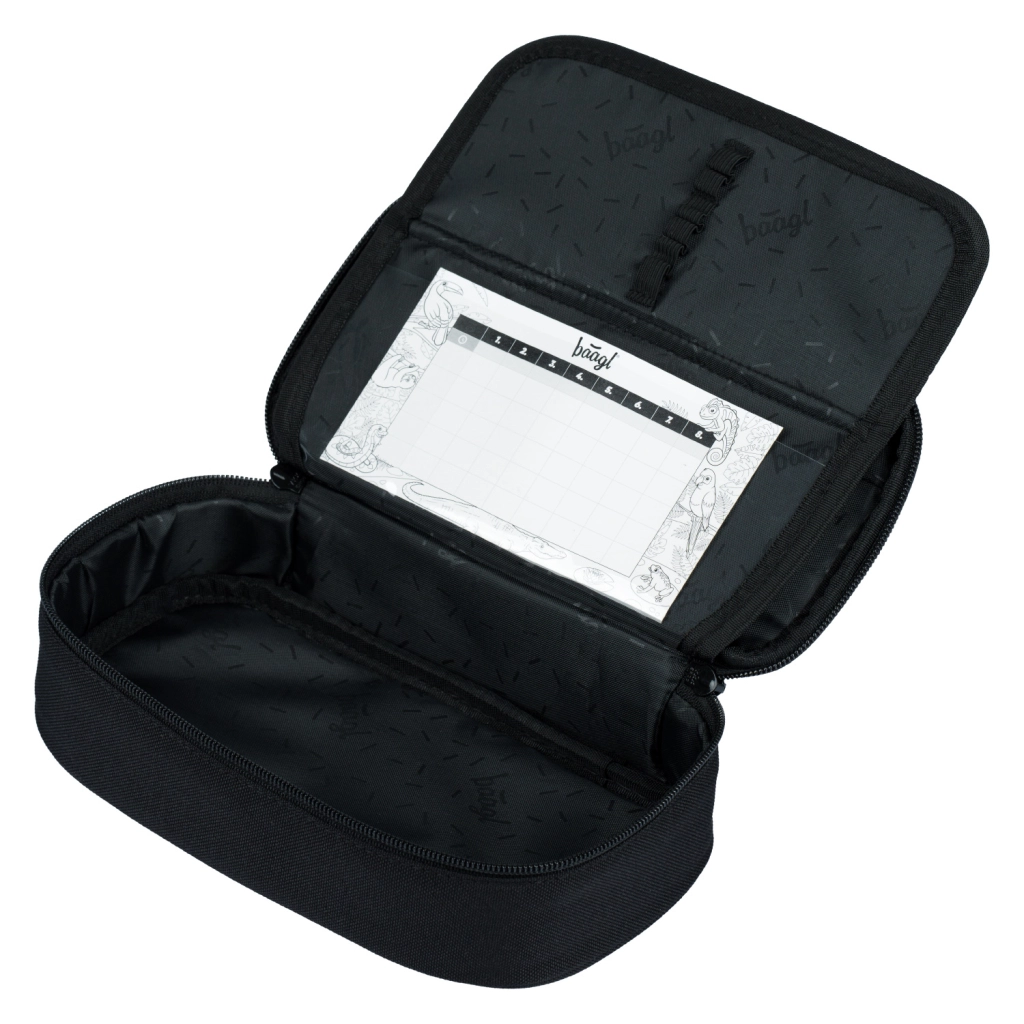 Piórnik ETUE DARKNESS jest sztywny, z odchylaną przegrodą, wewnętrzną kieszenią na zamek oraz kieszonką na plan lekcji. Wykonany z materiału z recyklingu, z zamkami YKK, dostarczany bez wyposażenia. Worek DARKNESS idealny na obuwie i drobiazgi, z wytrzymałego, zmywalnego materiału, ściągany mocnymi sznurkami, które pozwalają także na noszenie na plecach.