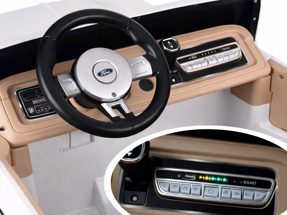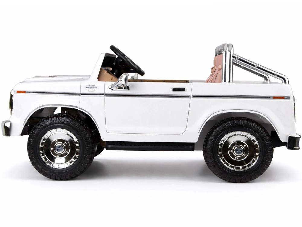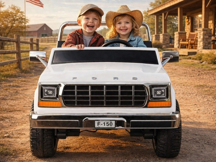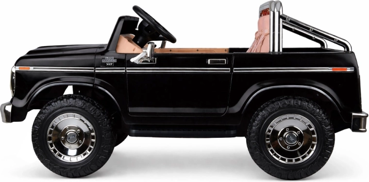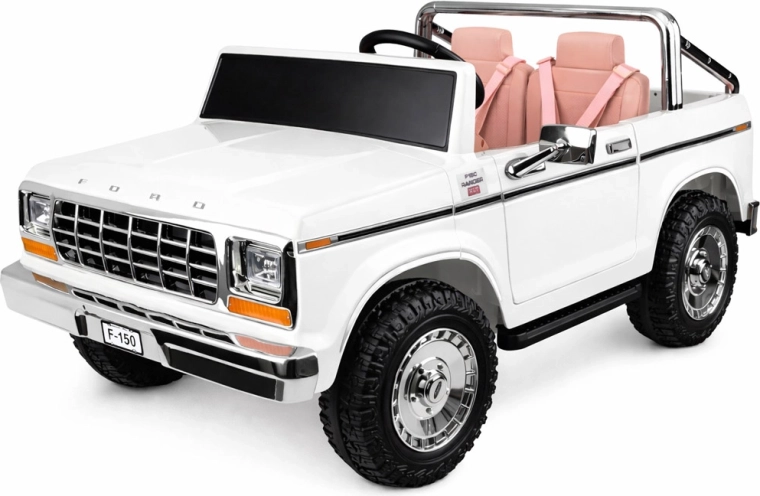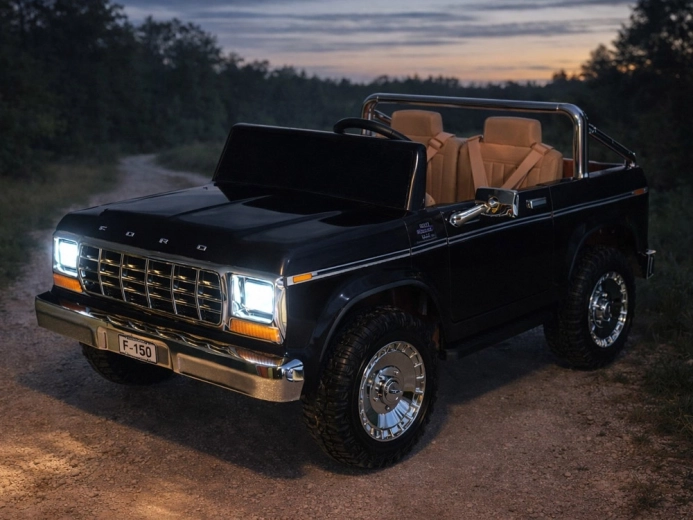 Stylowy elektryczny samochodzik pickup w stylu klasycznego FORD BRONCO oferuje retro design, miejsce dla dwojga dzieci oraz bezpieczną jazdę z pasami, płynnym ruszaniem i automatycznym hamulcem. Ma otwierane drzwi, eleganckie siedzenia, oświetlenie oraz bogate multimedia, w tym Bluetooth, radio FM i USB/MP3. W zestawie jest także zdalne sterowanie dla rodziców.