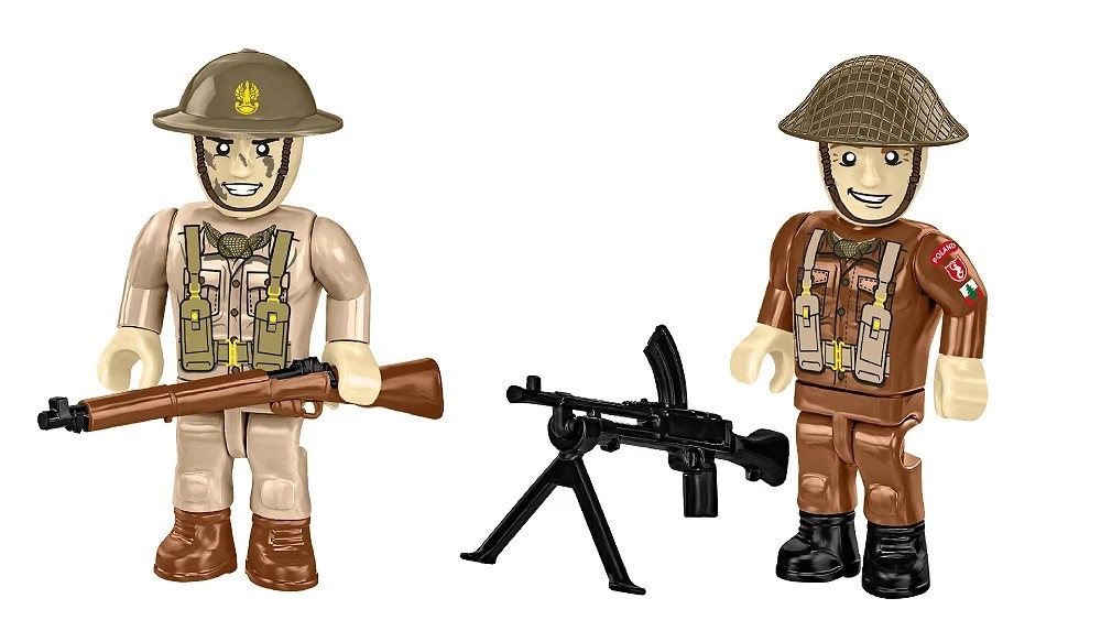 Dwie brytyjskie figurki, dwóch polskich żołnierzy i dwóch niemieckich spadochroniarzy z autentycznymi hełmami, kamizelkami i nadrukami pozwolą wiernie odtworzyć kluczowe momenty bitwy.