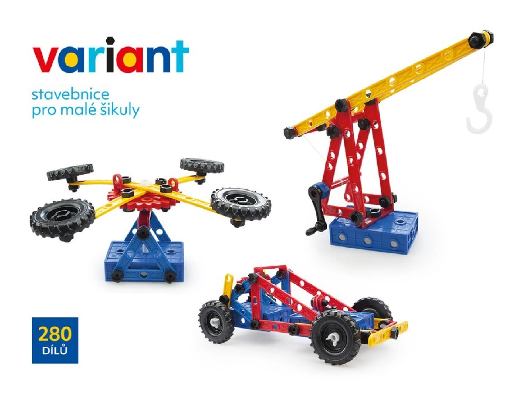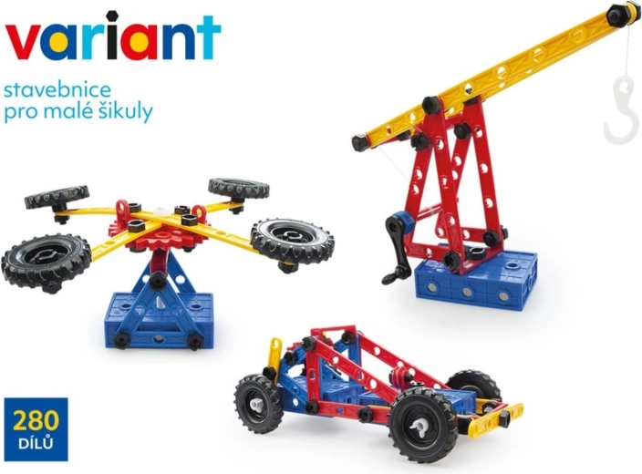 Odkryj kreatywny świat z plastikową konstrukcyjną zabawką Variant o 280 elementach, która rozwija małą motorykę, wyobraźnię przestrzenną oraz logiczne myślenie. Dzięki solidnym śrubkom i nakrętkom, dużym perforowanym panelom oraz kołom zębatym z łańcuchem dzieci zbudują auta, samoloty i statki – i to wielokrotnie.