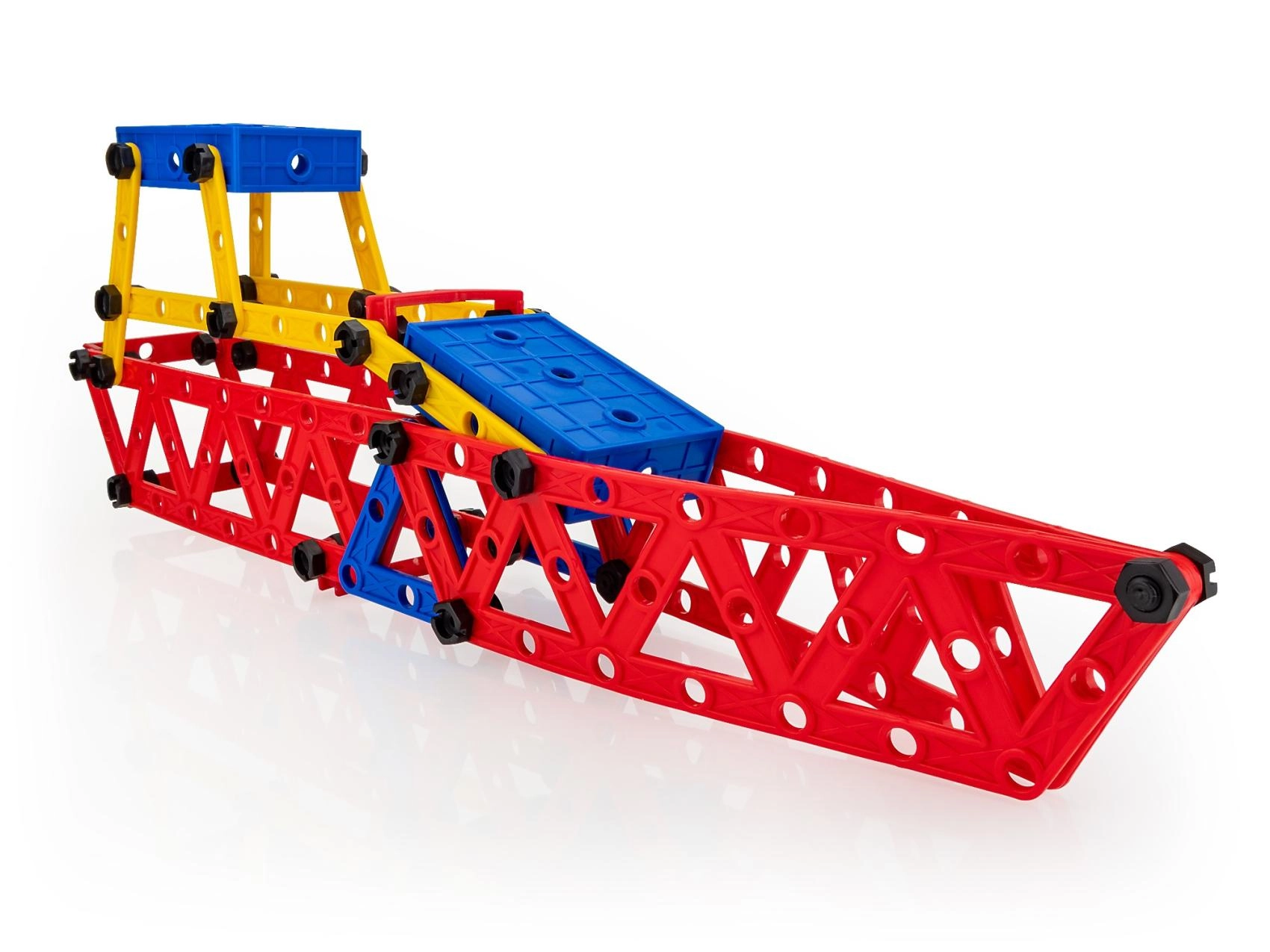 Duże perforowane panele, belki i łączniki pozwalają zbudować szereg modeli od samolotu po statek – wyobraźnia nie zna granic.