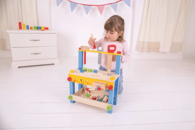 Ten kolorowy drewniany stół warsztatowy BIGJIGS TOYS to świetny start w świat narzędzi. Dzięki realistycznym elementom i bezpiecznym drewnianym narzędziom dzieci ćwiczą praktyczne umiejętności i poznają podstawy pracy z narzędziami – w sposób zabawny i bezpieczny.