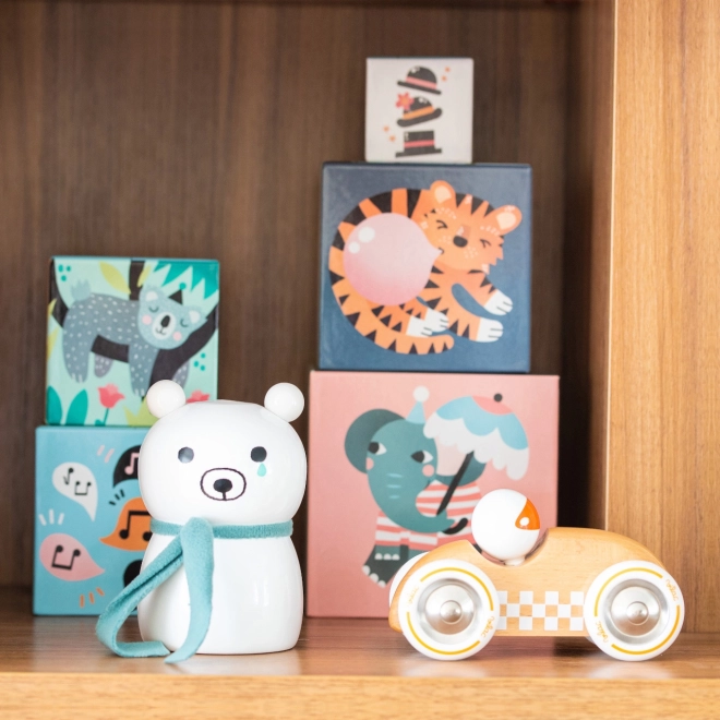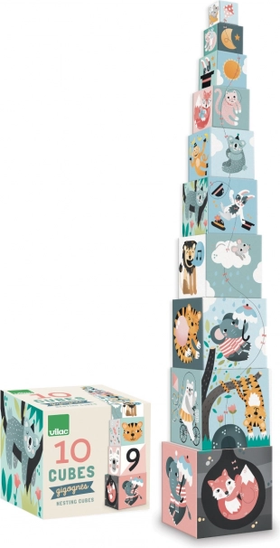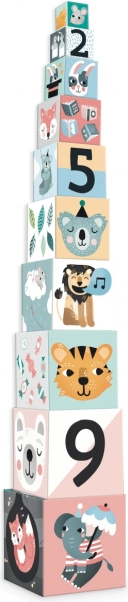 Prezentujemy układankę, która łączy zabawę i naukę w jednym kolorowym zestawie. Ten zestaw zawiera dziesięć kartonowych klocków zdobionych pięknymi ilustracjami zwierząt i liczb, stworzonych przez Michelle Carlslund.