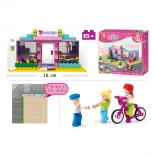 Ten kolorowy zestaw przedstawia nowoczesny salon piękności z witrynami, lustrami i miejscem do siedzenia, gdzie dzieci mogą odgrywać role wizażystek i klientek. Dzięki 3 figurkom i bogatym detalom powstają wciąż nowe scenki – od układania fryzur po przejażdżkę różowym rowerem.