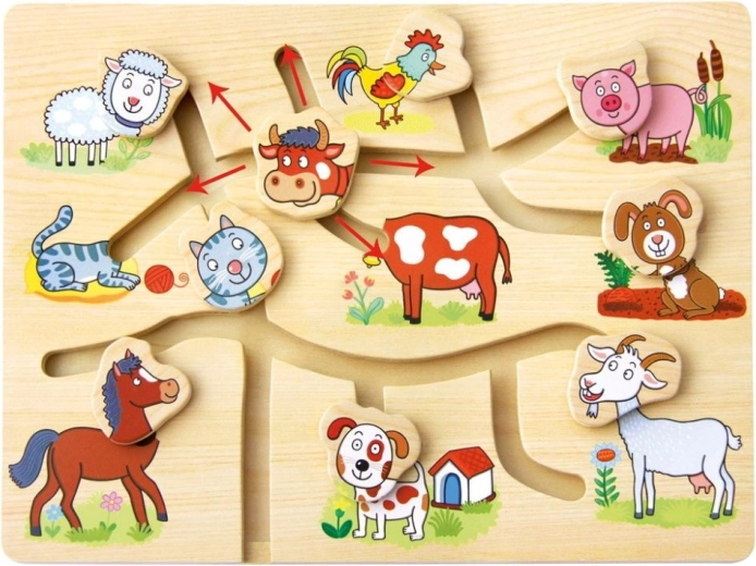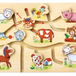 Odkryj urok tej drewnianej układanki z motywem gospodarstwa domowego, która została zaprojektowana do wspierania rozwoju dzieci. Labirynt ma na celu zabawny i interaktywny sposób pomóc poprawić drobną motorykę i koordynację wzrokowo-ruchową. Dzieci nie tylko uczą się rozpoznawać poszczególne zwierzęta, ale także doskonalą orientację przestrzenną i myślenie logiczne.