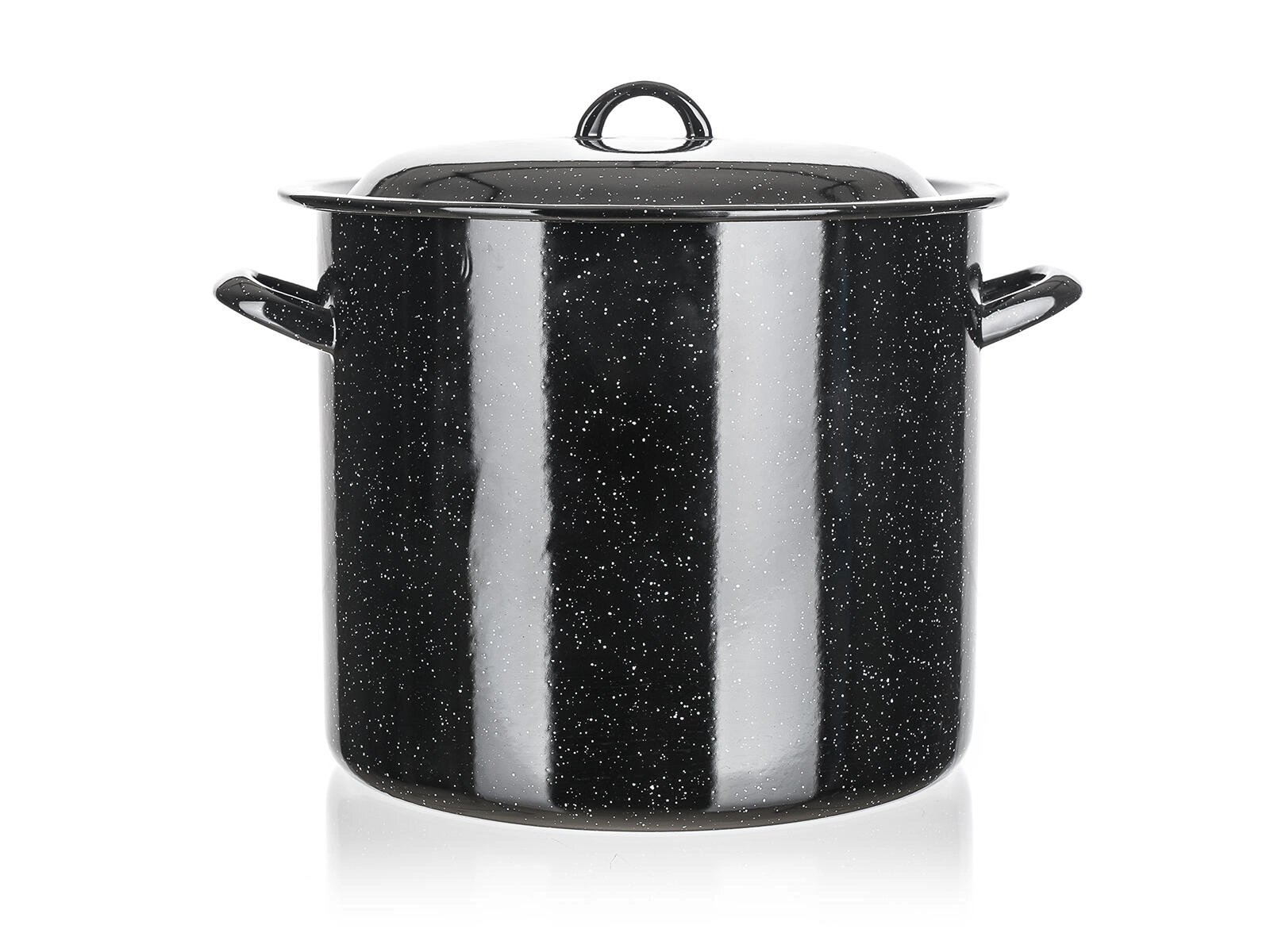 Powłoka emaliowana jest gładka, higieniczna i odporna na plamy. Dwa solidne boczne uchwyty ułatwiają przenoszenie i odlewanie. Garnek jest kompatybilny ze wszystkimi popularnymi rodzajami kuchenek poza indukcją, więc sprawdzi się w każdej kuchni.