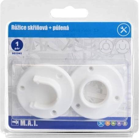 Praktyczny zestaw rozet szafkowych w białym kolorze do łatwego i solidnego mocowania karniszowych i garderobianych drążków w otworach i szafach. Zestaw zawiera rozetę pełną oraz rozetę dzieloną do uniwersalnego zastosowania i łatwego montażu.