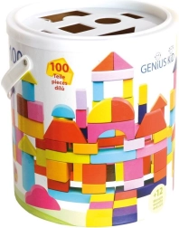 W wiaderku znajdziesz 100 kolorowych klocków o różnych kształtach, które zajmą dzieci na długie godziny. Pokrywka wiaderka służy jako zabawka do wkładania, która pomoże twojemu dziecku nauczyć się rozpoznawania różnych kształtów i poprawiać małą motorykę.