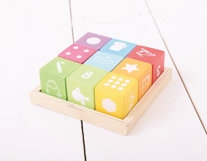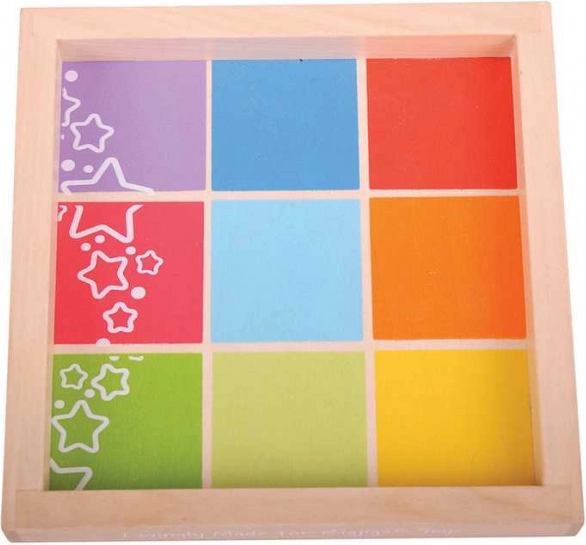 - Praktyczne opakowanie: 9 klocków + drewniana taca do przejrzystego przechowywania.