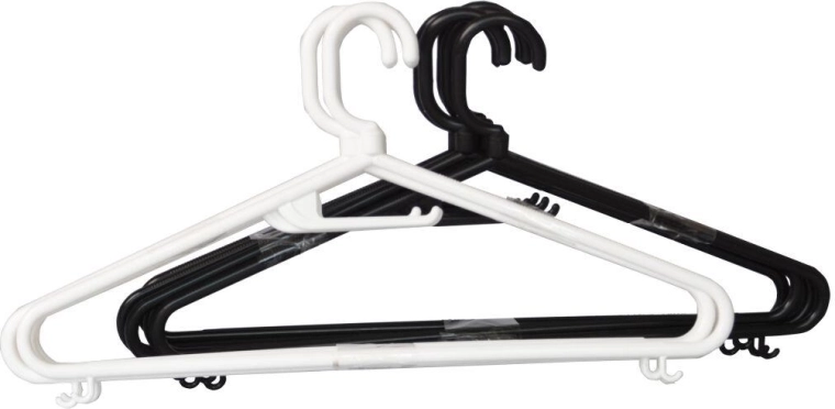 Utrzymaj porządek w szafie dzięki praktycznym męskim wieszakom z wysokiej jakości plastiku. Dzięki obrotowemu haczykowi z łatwością dopasujesz orientację odzieży i maksymalnie wykorzystasz przestrzeń. Mix kolorów (biały i czarny) pasuje do każdego wnętrza garderoby.