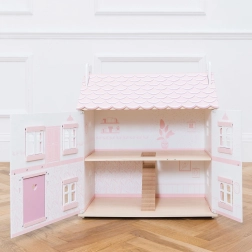 Uroczy drewniany domek dla lalek LE TOY VAN Sophie z premiumowej kolekcji Daisylane oferuje trzy piętra zabawy, otwierane okna i okiennice z kwiatowym motywem oraz ręcznie malowane pastelowe detale. Wykonany z drewna FSC, malowany nietoksycznymi farbami na bazie wody i całkowicie bez plastiku – piękny, trwały i zrównoważony prezent, który wspiera wyobraźniową zabawę.