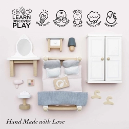 Le Toy Van wprowadza zestaw do sypialni, który dodaje elegancji i komfortu każdemu domkowi dla lalek. Zabawny i marzycielski świat dziecięcej wyobraźni staje się rzeczywistością z tym zestawem.
