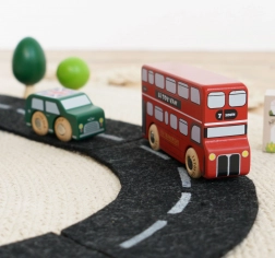 Zestaw łatwo włączysz do istniejących drewnianych garaży i torów kolejowych Le Toy Van oraz innych marek. Dzieci zbudują dzięki temu własne miasto pełne akcji i zabawy.