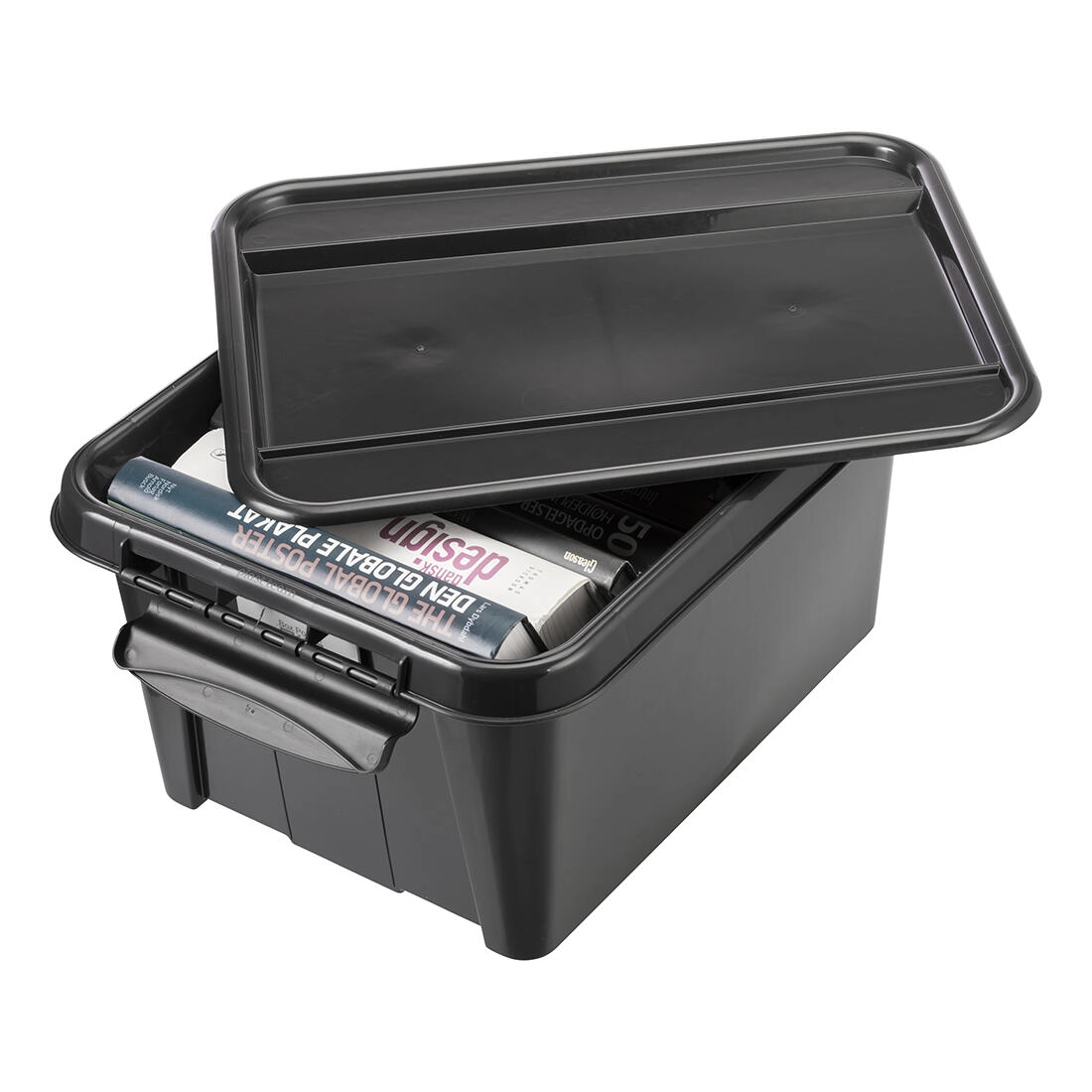 Praktyczny pojemnik do przechowywania o pojemności 32 l z solidną pokrywą i dwoma dużymi klipsami dla bezpiecznego zamknięcia. Wykonany z recyklingowanego PP, jest wytrzymały, można go sztaplować i idealnie nadaje się do przejrzystego przechowywania rzeczy w domu, biurze i garażu.