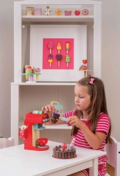 Ten wysokiej jakości drewniany ekspres do kawy zapewnia dzieciom autentyczne wrażenia z przygotowywania kawy. Kolorowe kapsuły można umieścić w dźwigni i „zaparzyć” napój bezpośrednio do malowanego kubeczka; nie brakuje też spieniacza do mleka i łyżeczki. Kapsuły wygodnie przechowasz w otworze w górnej części ekspresu, dzięki czemu wszystko jest pod ręką.