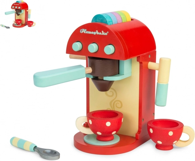 Stylowy dziecięcy ekspres do kawy z kolekcji Honeybake od LE TOY VAN ucieszy małych baristów. Oferuje realistyczną zabawę w kawiarnię z drewnianymi kapsułami, dźwignią, spieniaczem do mleka i uroczym kubeczkiem. Wykonany z zrównoważonego drewna FSC, ręcznie domalowywany nietoksycznymi farbami na bazie wody dla bezpiecznej i kreatywnej zabawy.