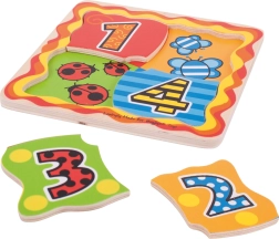 Odkryj pierwszą układankę do nauki liczenia dla najmłodszych – kolorowe drewniane elementy z liczbami 1–4, które dzieci łatwo chwytają i wkładają w odpowiednie otwory. Zabawka wspiera rozwój małej motoryki, rozpoznawanie liczb oraz koordynację ręka–oko. Kompaktowe wymiary są idealne w domu i w podróży.