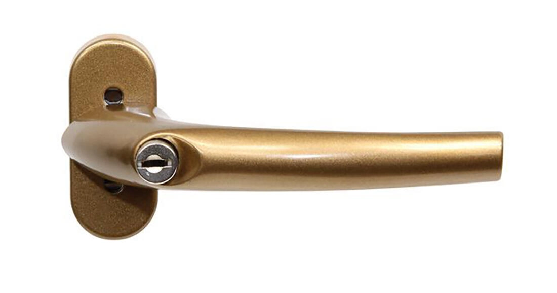 Bezpieczna i elegancka klamka do okien i drzwi z PVC z wbudowanym zamkiem. Oferuje łatwe ryglowanie przez wciśnięcie wkładki, możliwość zamknięcia również w pionowej pozycji wietrzenia oraz blokadę co 45° dla wygodnej obsługi. Trwałe aluminiowe wykonanie z powierzchnią F4 – brązowy fluorocarbon doskonale komponuje się z nowoczesnymi wnętrzami.
