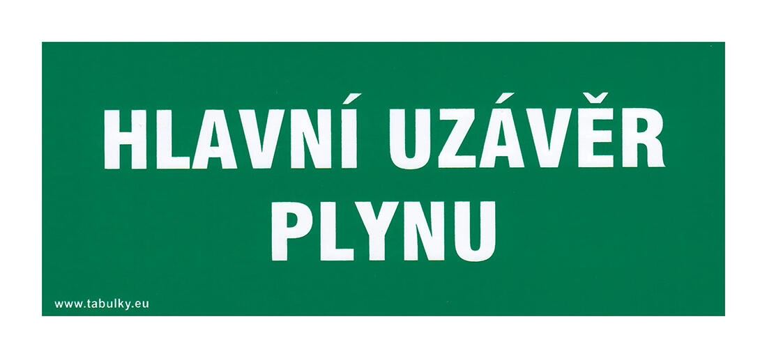 Praktyczna i wytrzymała samoprzylepna tabliczka z napisem Główny zawór gazu o wymiarach 210 × 87 mm do szybkiego i wyraźnego oznaczenia. Idealna do zwiększenia bezpieczeństwa i redukcji ryzyka w zakładach, budynkach oraz domach.