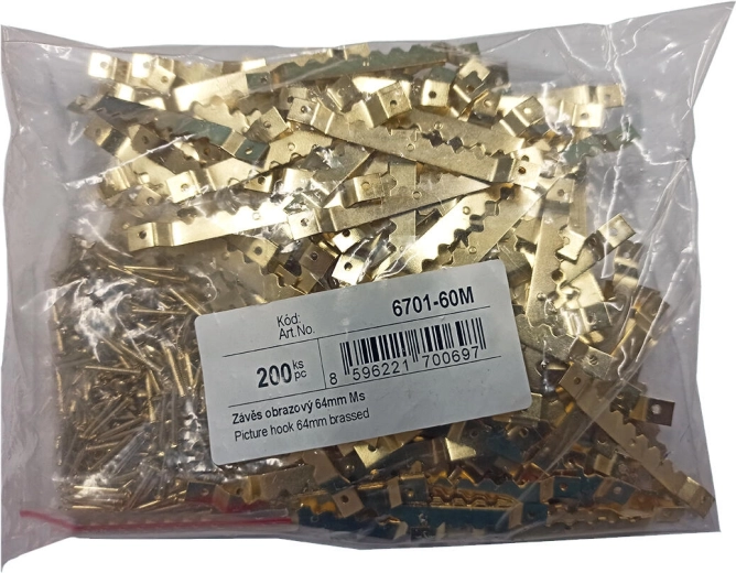 Postaw na solidne i estetyczne mocowanie swoich obrazów. Mosiężna zawieszka o długości 64 mm oferuje długą żywotność, wysoką odporność na korozję i czysty wygląd, odpowiedni do domów, biur i galerii. Montaż jest prosty – wystarczy przybić zawieszkę do tylnej strony ramy dołączonymi gwoździkami.