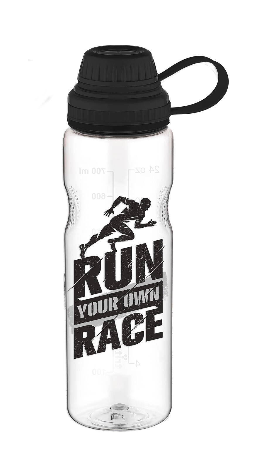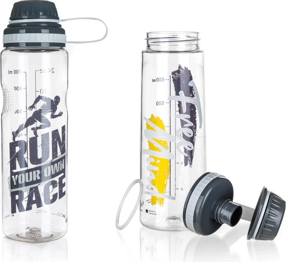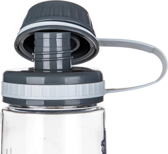 Zakręcane wieczko z tworzywa PP jest wodoszczelne, dzięki czemu butelkę można bezpiecznie przenosić w plecaku lub torbie sportowej bez ryzyka niekontrolowanego wycieku.