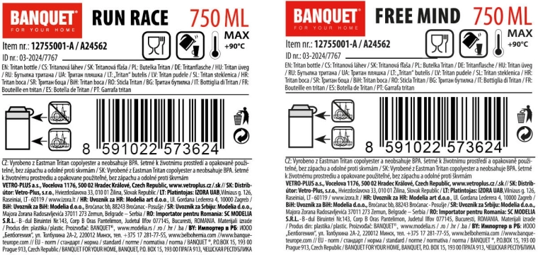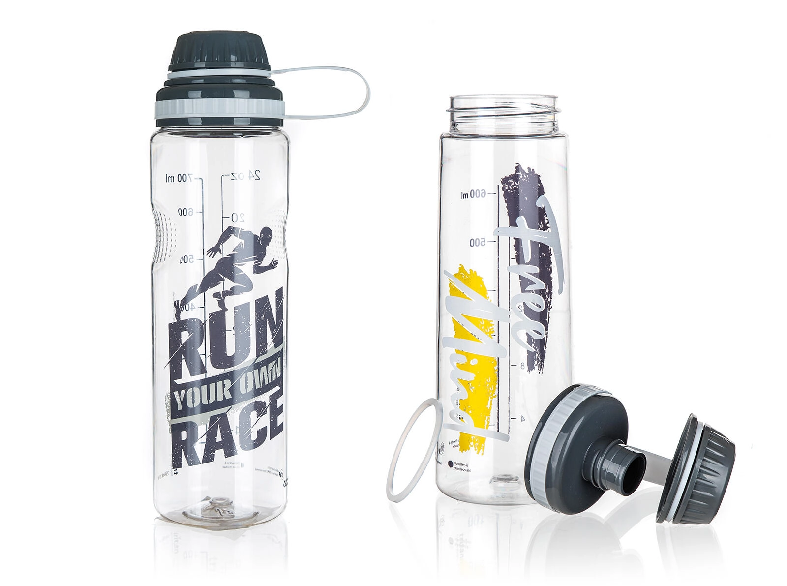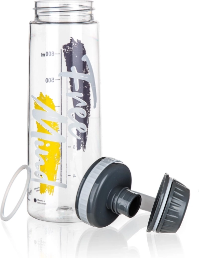 Butelka została wykonana z wysokiej jakości tritanu, który jest lekki, odporny na uderzenia i odpowiedni do zimnych oraz ciepłych napojów. Nie pochłania zapachów ani smaków.