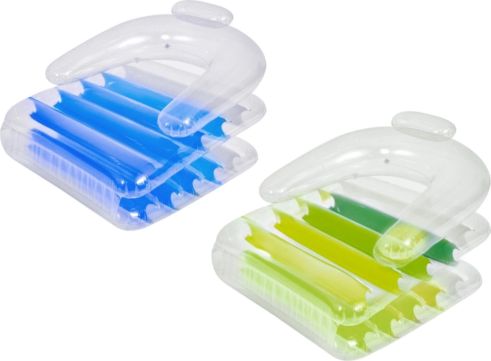 Leżanka dostępna jest w mixie kolorów (transparentny/niebieski, zielony), więc łatwo dobierzesz styl do siebie. Odpowiednia dla młodzieży i dorosłych z udźwigiem do 100 kg; zalecany wiek od 14 lat.