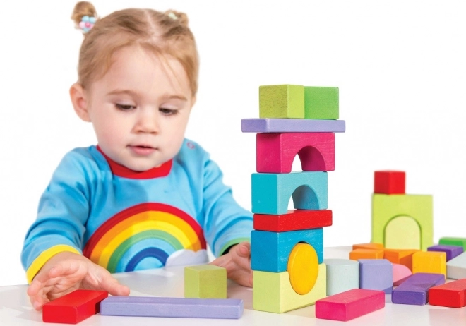 W zestawie znajduje się 45 kolorowych klocków, które wspierają kreatywność oraz rozwój zdolności motorycznych.