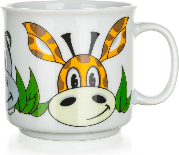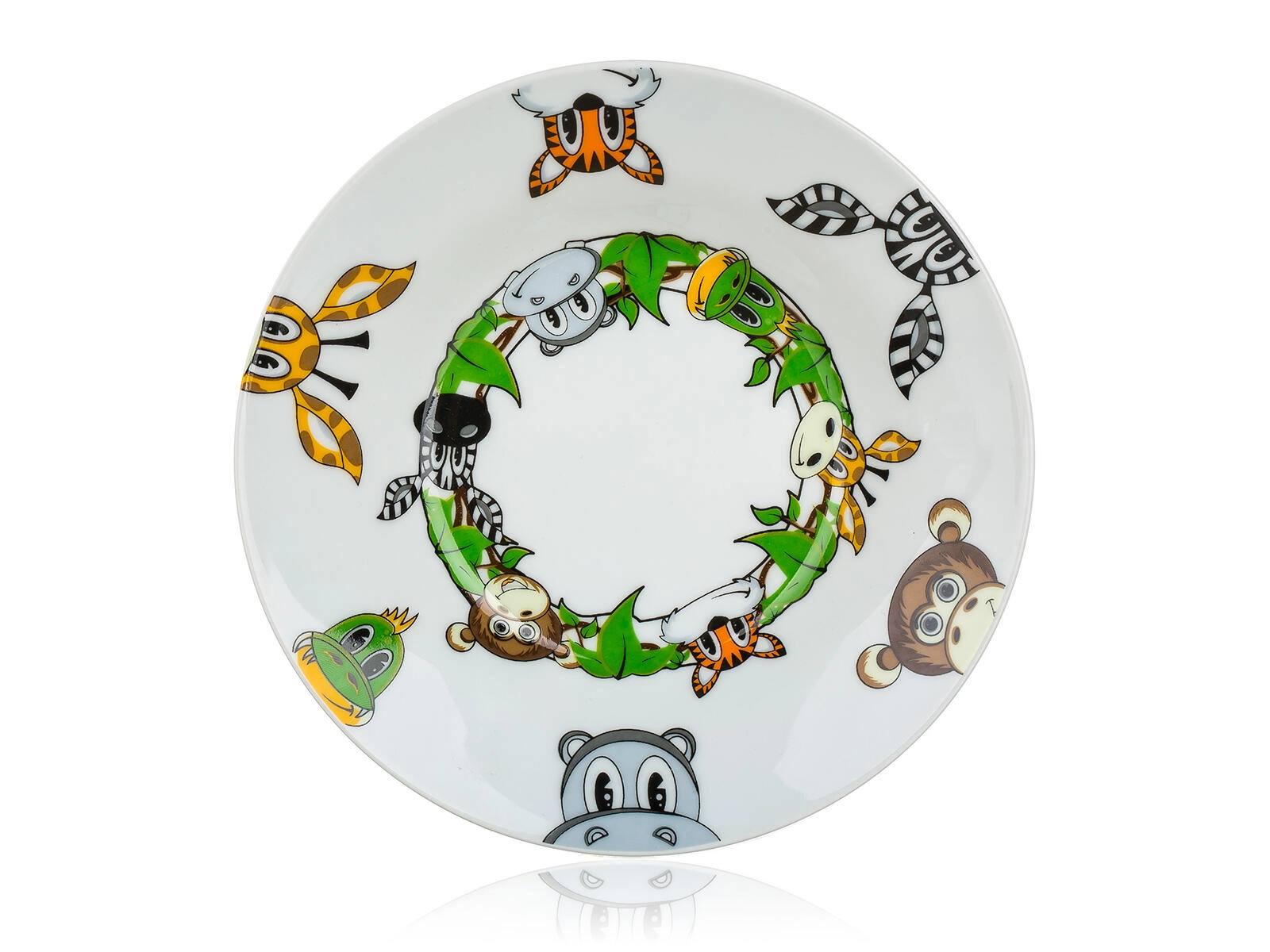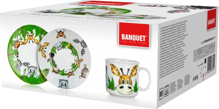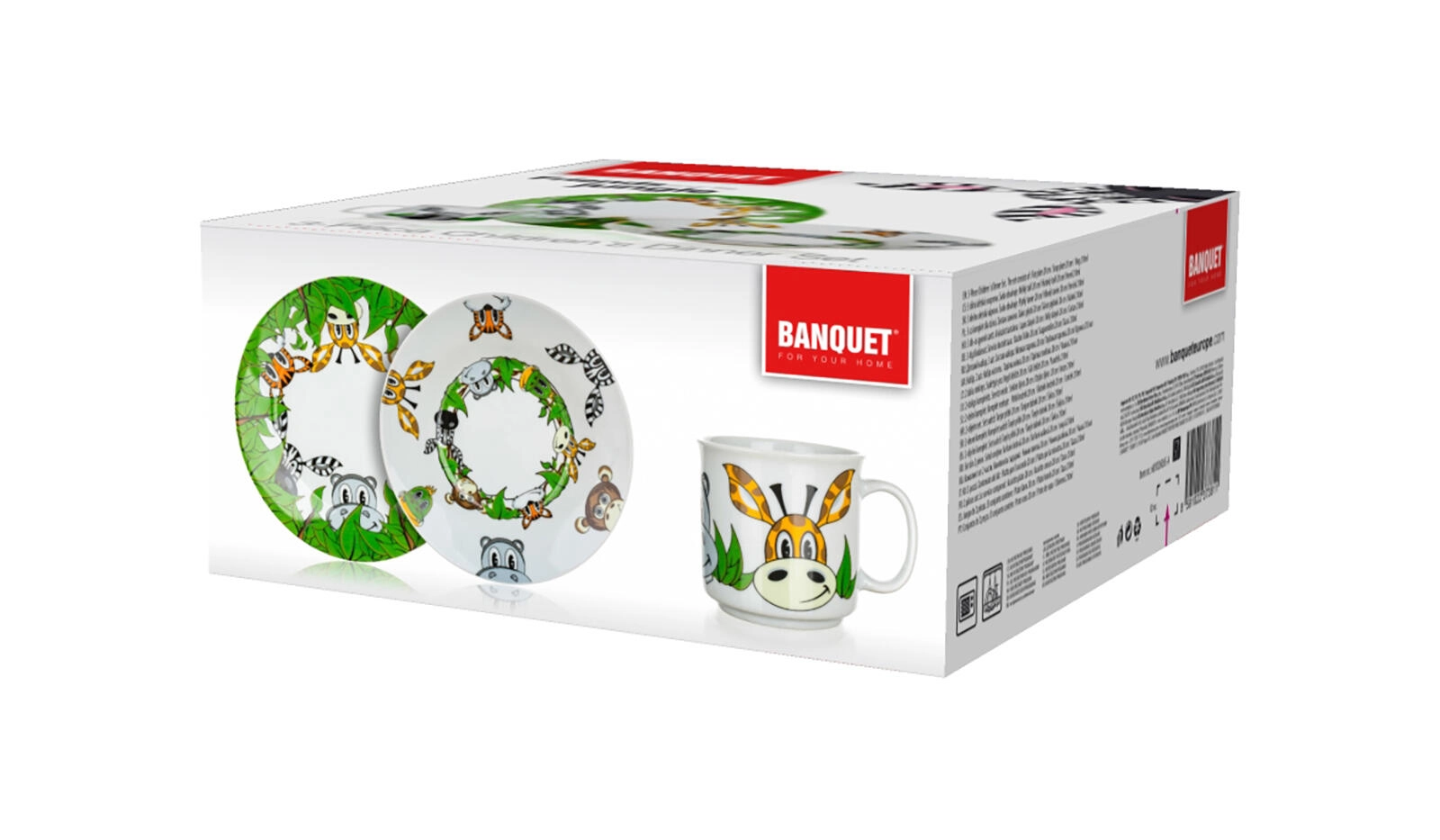 Wszystkie elementy wykonano z wytrzymałej ceramiki, która dobrze trzyma ciepło, nie przejmuje smaków i łatwo się czyści. Dzięki szerokim brzegom dziecko ma pewniejszy chwyt, a jedzenie wygodnie pozostaje na miejscu. Zabawny motyw z żyrafą, tygrysem i zebrą wprowadza radosną atmosferę do każdego posiłku.
