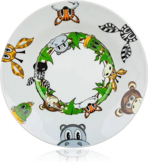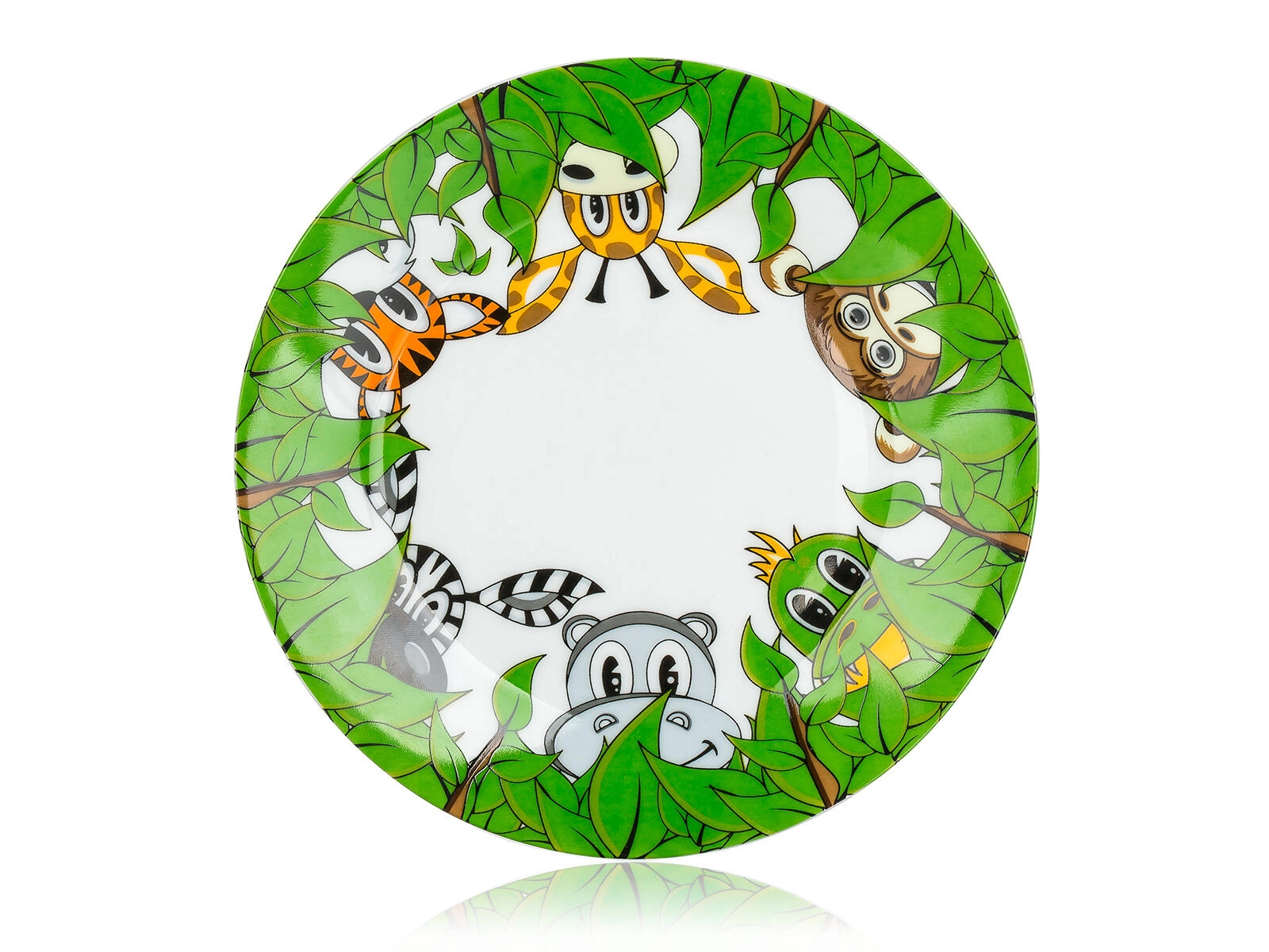 Kolorowe zwierzątka i liście dżungli zachęcają dzieci do jedzenia i tworzą pozytywny rytuał przy stole.