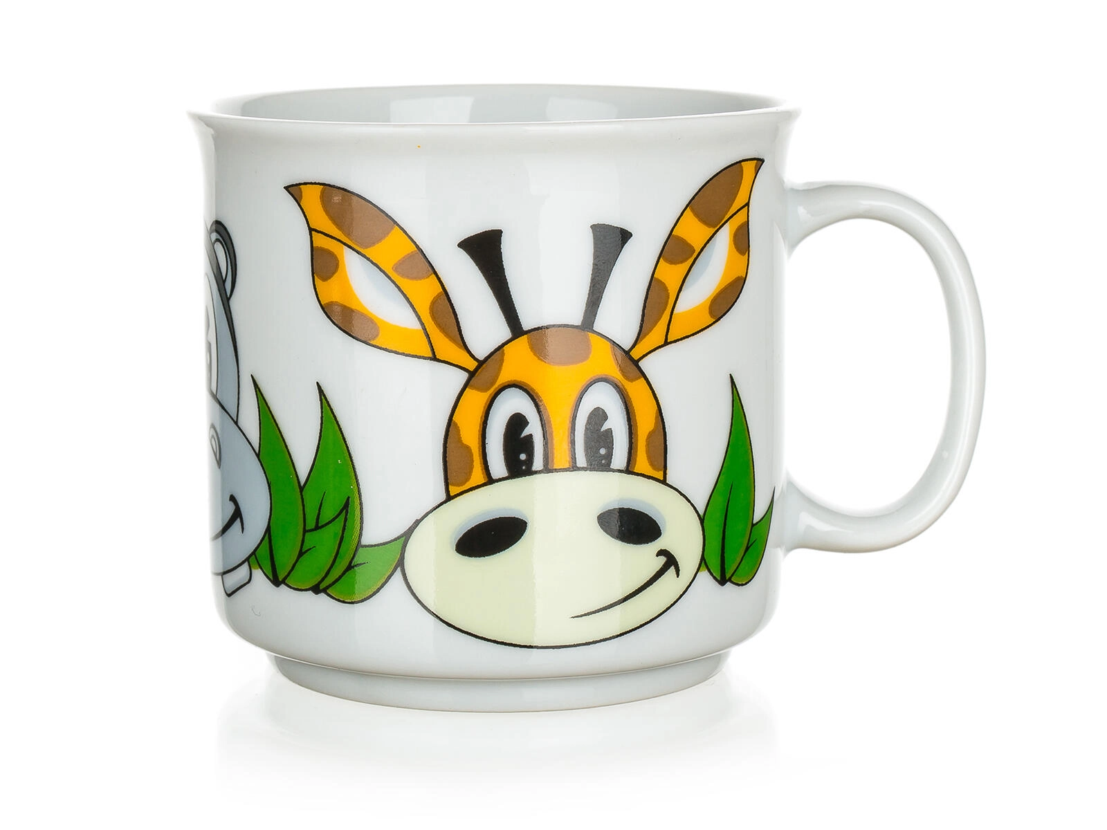 Wysokiej jakości ceramika dobrze utrzymuje ciepło, łatwo się myje, a kubek z uchem dobrze leży w dziecięcych dłoniach.
