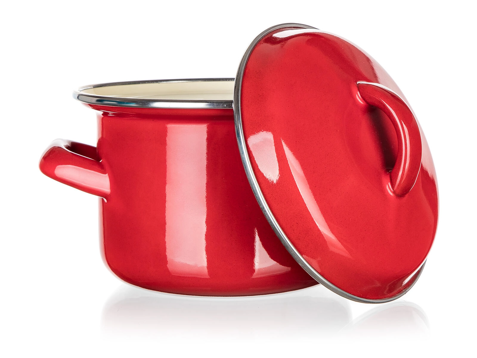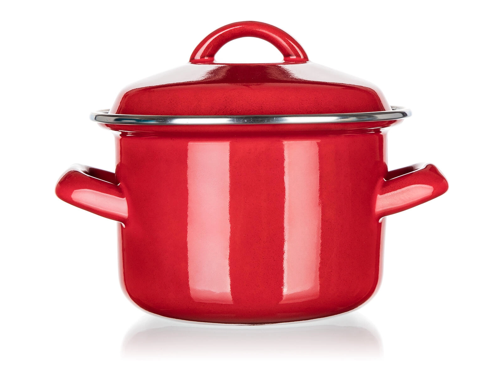 Kompaktowy emaliowany garnek z pokrywką o pojemności 0,78 l i średnicy 12 cm jest idealny na mniejsze porcje, sosy lub podgrzewanie. Trwała emaliowana powłoka w czerwonym kolorze, kremowe wnętrze oraz uniwersalne dno do wszystkich typów kuchenek, w tym indukcji gwarantują łatwe gotowanie i długą żywotność.