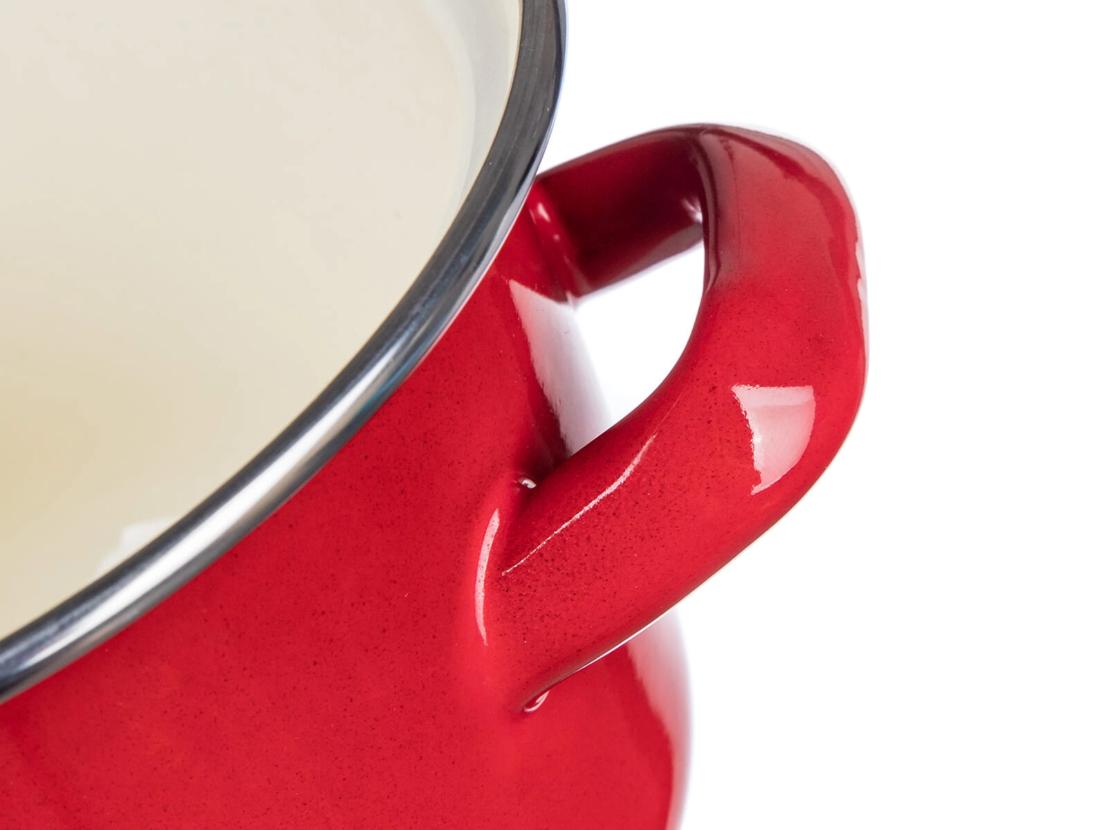 Czerwone, błyszczące wykończenie z kremowym wnętrzem jest odporne na zarysowania i łatwe w czyszczeniu.