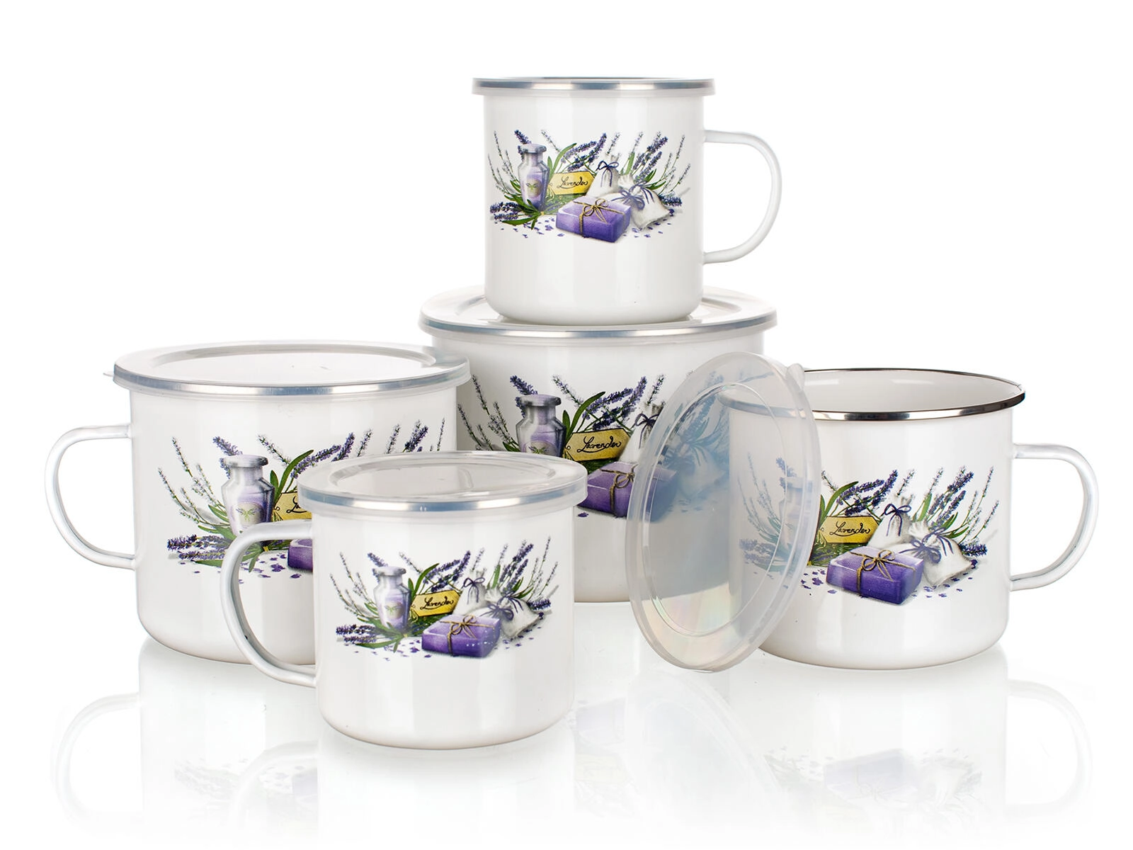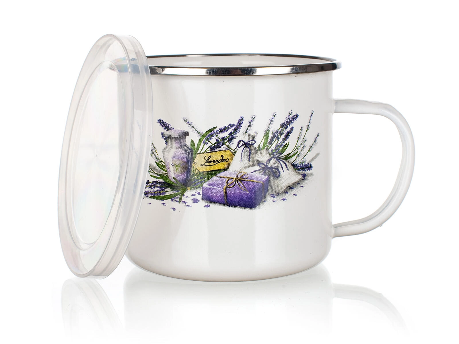 Emalia słynie z odporności na zarysowania i łatwej pielęgnacji. Kubek jest lekki, stabilny i wygodnie leży w dłoni. Pokrywka sprawdza się także do krótkotrwałego przechowywania napojów lub drobnych produktów spożywczych, aby dłużej pozostały świeże. Stylowy nadruk Lavender nada Twojemu stołowi nutę Prowansji.