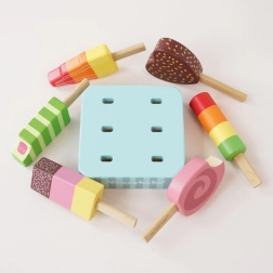 Sześć unikatowo malowanych drewnianych lodów w wesołych kolorach i kształtach pobudza wyobraźnię i zachęca do nieskończonej zabawy w lodziarnię.