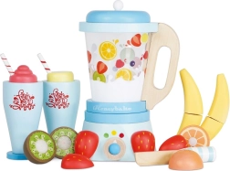 Ten stylowy drewniany zestaw z kolekcji Honeybake zamieni każdą dziecięcą kuchnię w bar smoothie. Dzieci mogą bezpiecznie „kroić” owoce na rzep, napełniać dzbanek miksera i serwować pyszne napoje do dwóch kubeczków ze słomką. Realistyczne detale wspierają zabawy w odgrywanie ról, rozwój małej motoryki oraz umiejętności poznawcze.