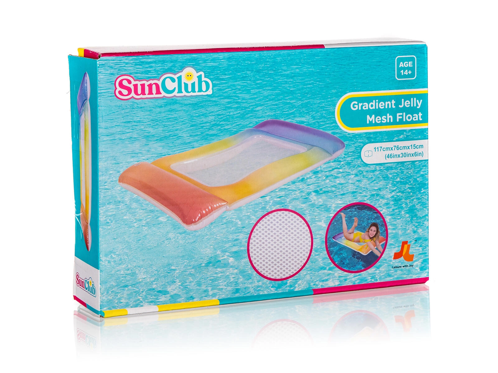 Ciesz się letnim relaksem na wodzie z tym wygodnym nadmuchiwanym leżakiem z siatką. Dzięki wymiarom 117 × 76 cm i nośności 80 kg zapewnia stabilny wypoczynek, a oddychająca siatka przyjemnie chłodzi. Trwały materiał winylowy i tęczowy design gwarantują styl i długą żywotność.